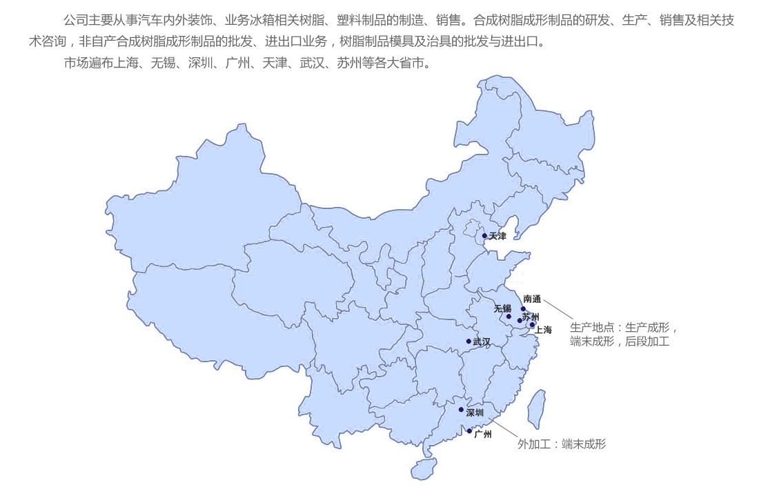 公司主要從事汽車內(nèi)外裝飾、業(yè)務(wù)冰箱相關(guān)樹脂、塑料制品的制造、銷售。日本中部化學(xué)株式會(huì)社已在日本成立60年有余,擁有固定的客戶,因業(yè)務(wù)擴(kuò)展需要故在中國成立中部新材料科技(南通)有限公司。